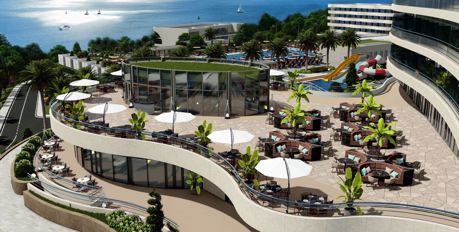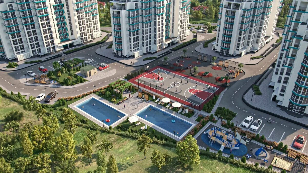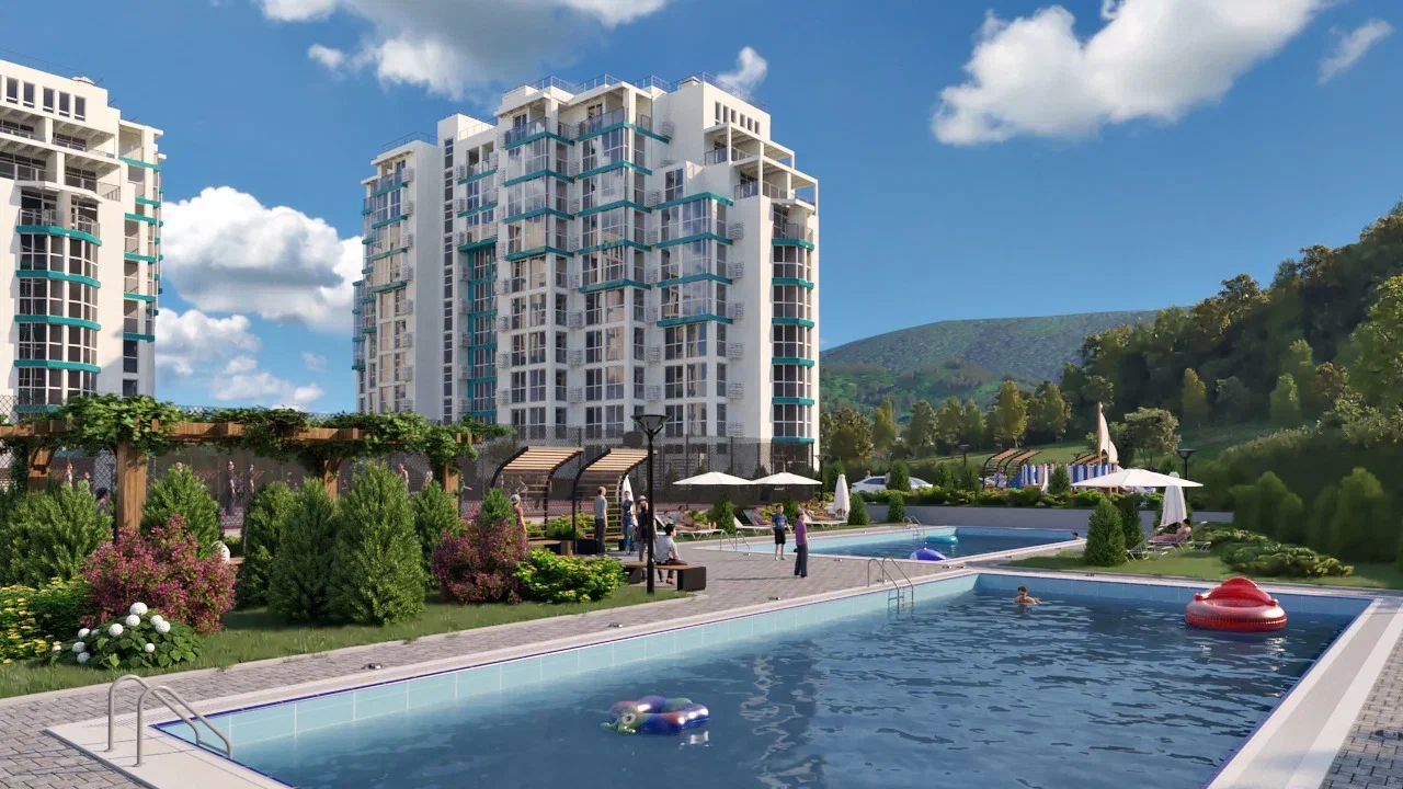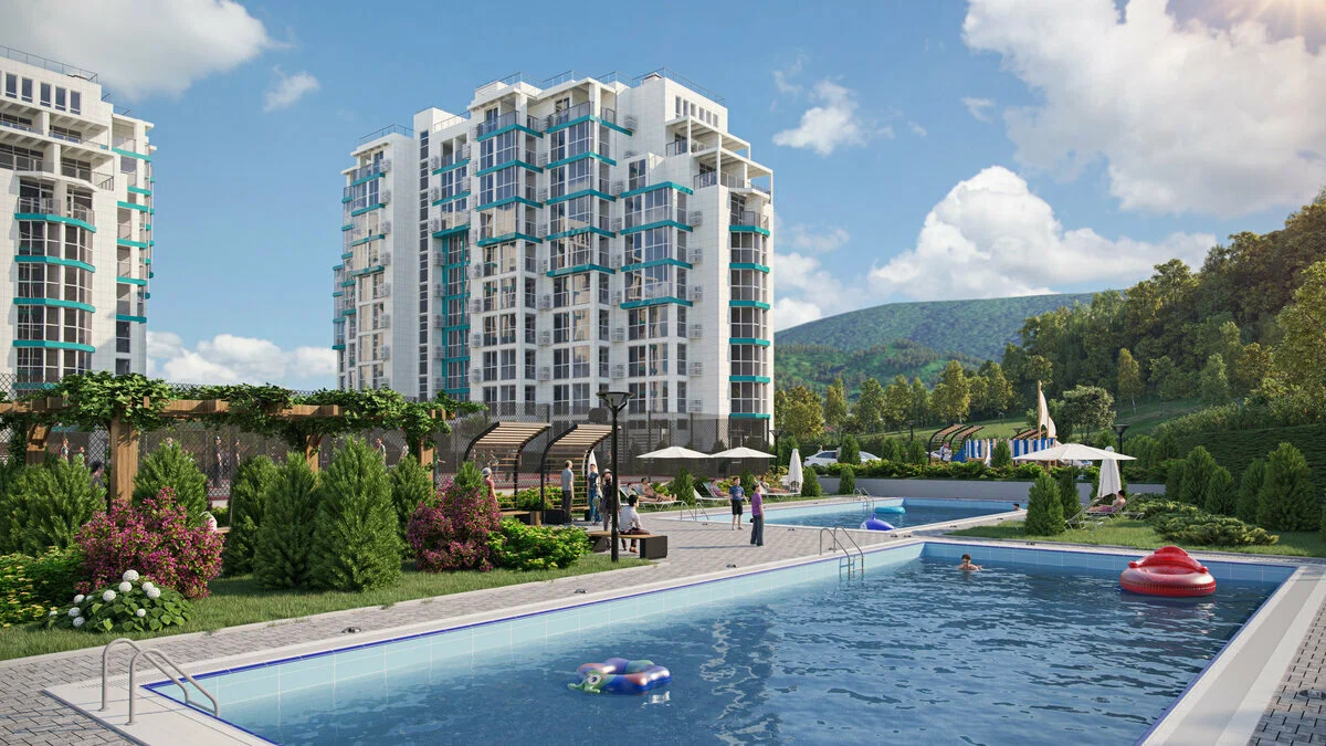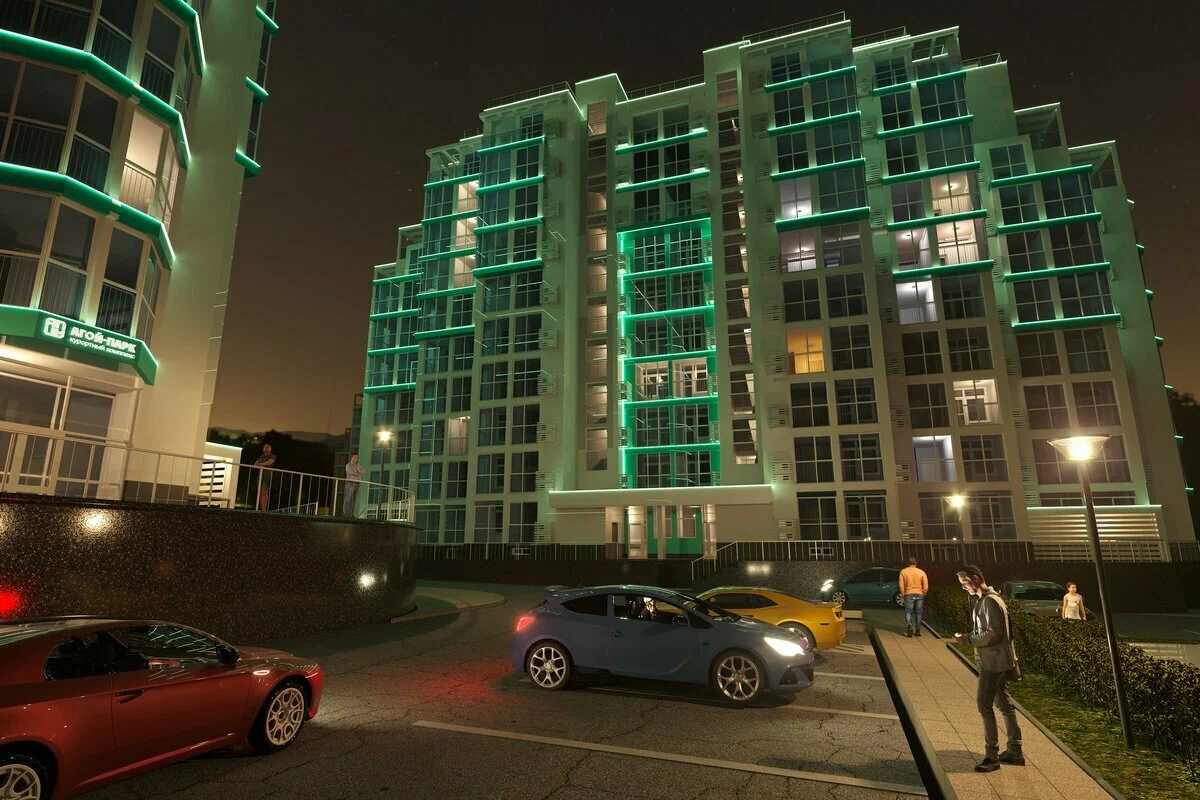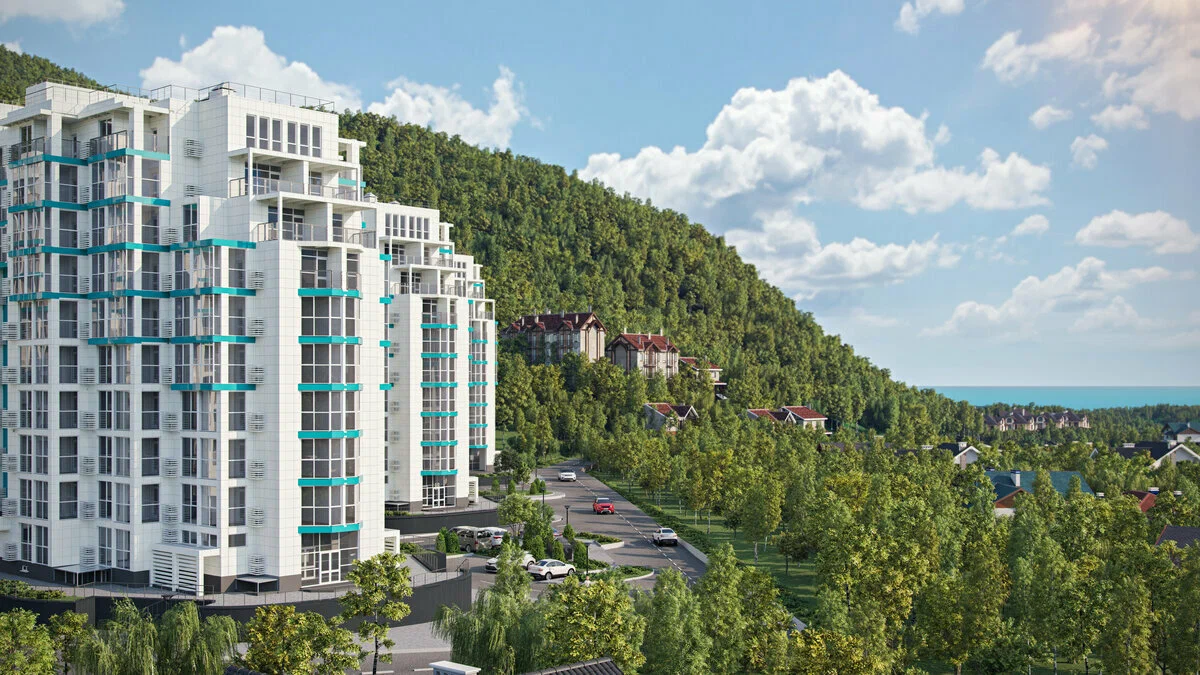 Благодаря каскадному расположению зданий у каждой квартиры есть балкон с видом на море или горы. За настроение резидентов в разное время суток отвечает световое решение. В ночное время жилой комплекс выделяется на фоне окружения благодаря архитектурно-художественной подсветке зданий и прилегающей территории.